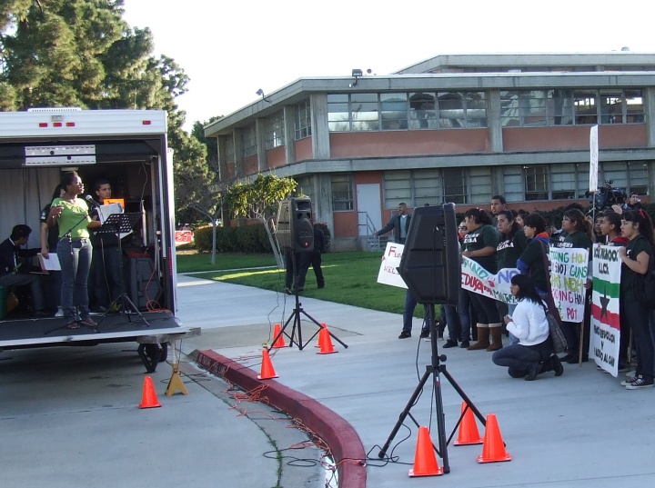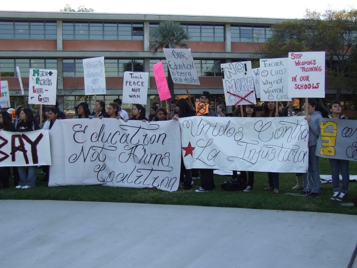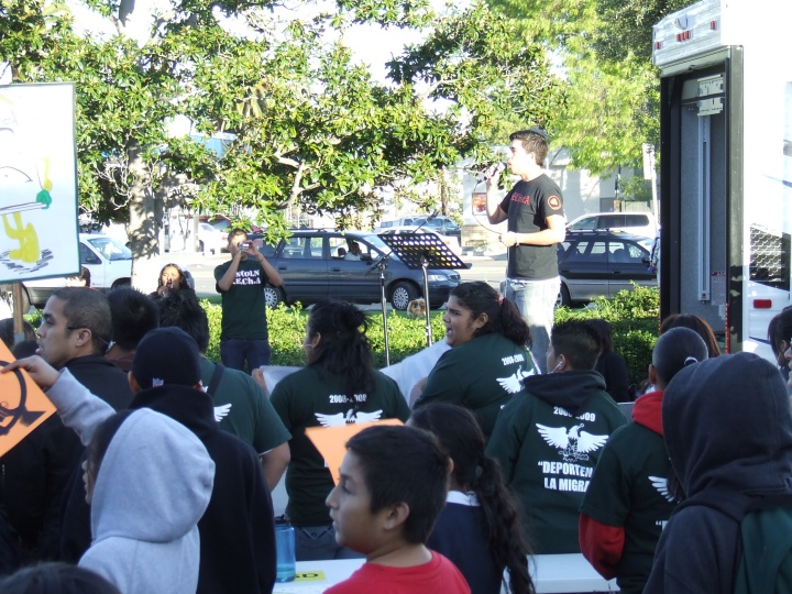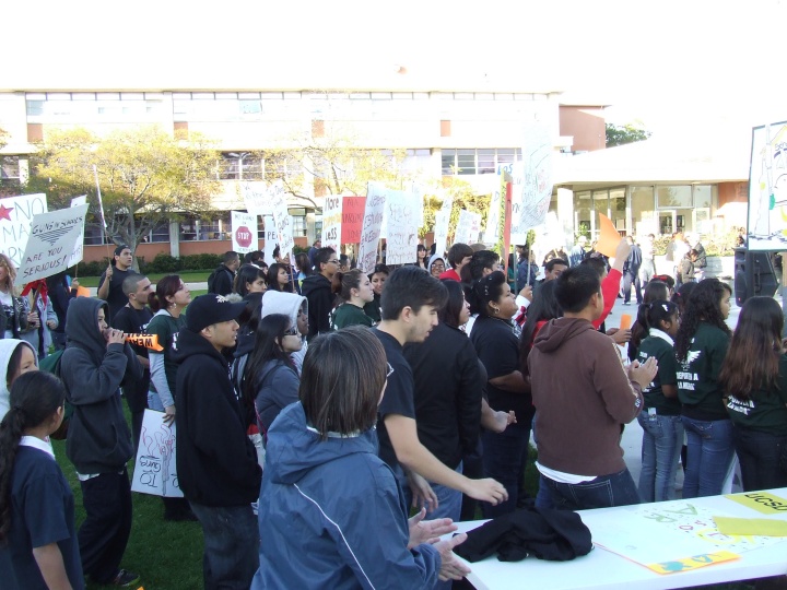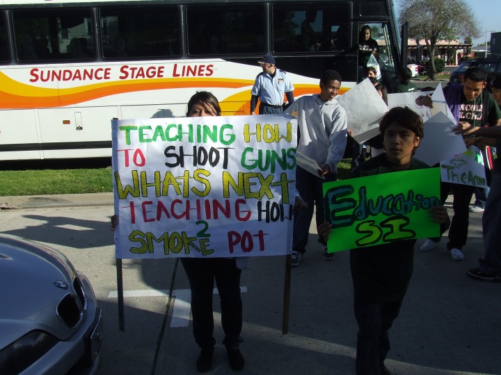 | High school students arriving for rally before board meeting. Students organized carpool and bus transportation with help from coalition members and parents. |  DSCF1716opt.jpg |