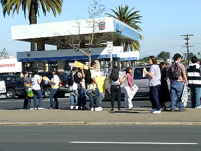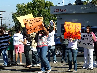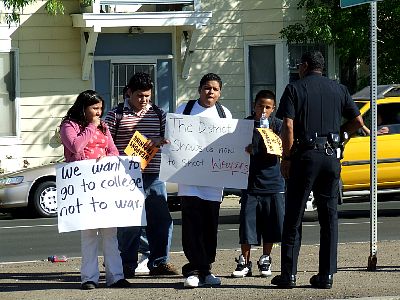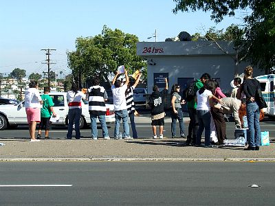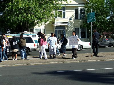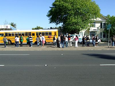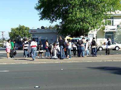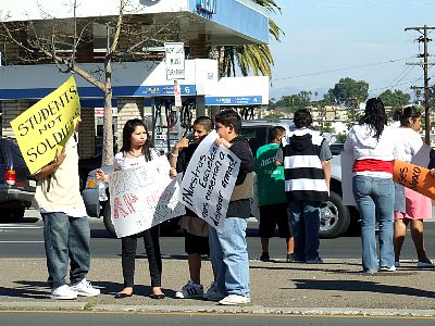 More students farther down the block. |