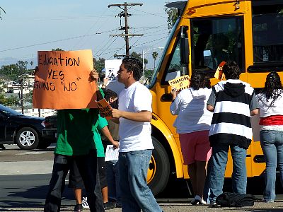 Students occupy pedestrian island in the middle of Normal St. |