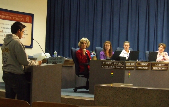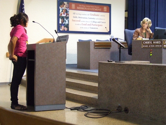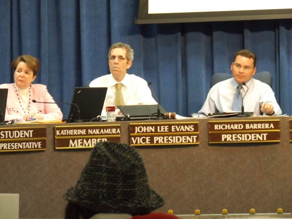 ![]() bdscf2502.jpg Board members Katherine Nakamura, John Lee Evans and Richard Barrera listen to testimony at the second hearing. |