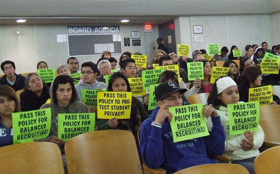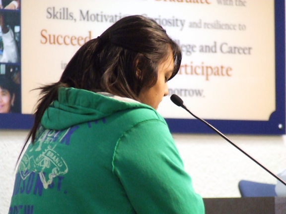 ![]() ddscf2516.jpg In the audience are about 70 students, parents and others showing their support for the policy. |