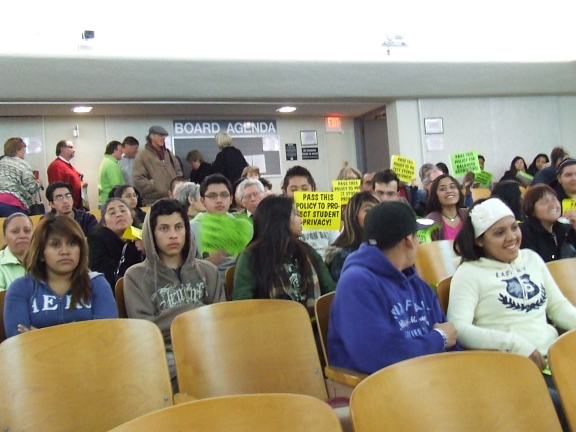 ![]() ddscf2516.jpg In the audience are about 70 students, parents and others showing their support for the policy. |